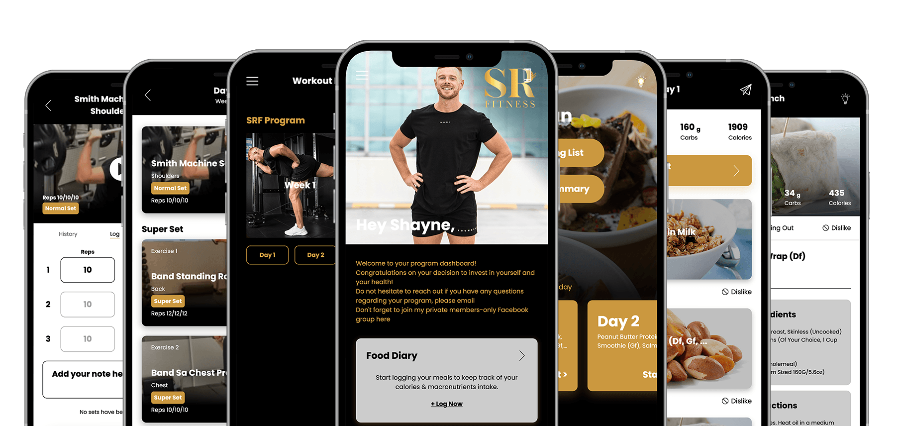 With the convenience of your programs being on a Web-App, I have made your fitness journey that much easier to achieve your goals! If you are in the supermarket, your shopping list will be available for you to use or in the gym, your programs will be in your pocket!